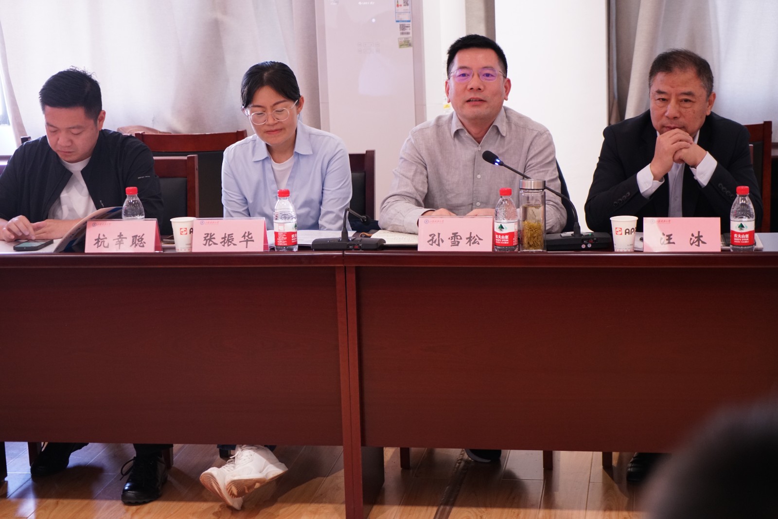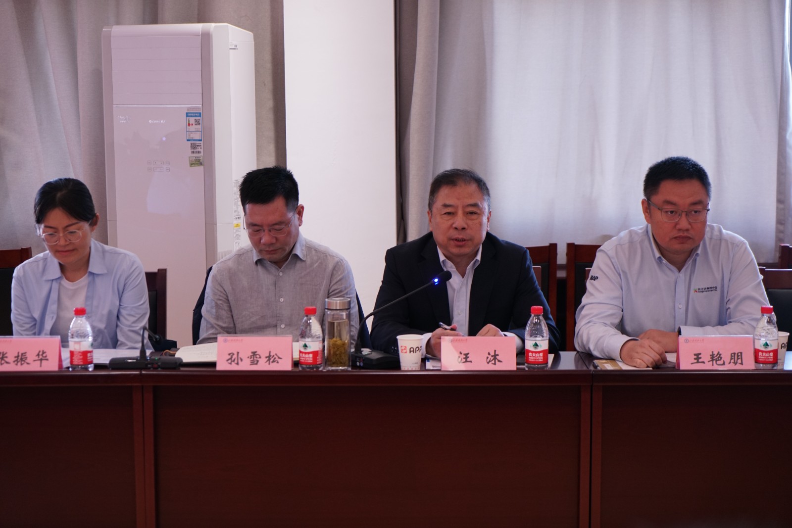 在研讨会上,四位企业代表就人才培养、科技对接进行专题发言。迈安德集团有限公司副董事长汪沐从企业基本情况、人才培养需求着手,结合企业经营现状,提出迫切需要具有工艺工程设计技术能力以及粮油加工专业知识的人才。同时强调在企业运营过程中销售的重要性,希望不断加强校企合作,培养具有相关专业技术背景的人才。常州粮食和物资储备有限责任公司孙雪松书记从老粮校毕业生身份出发,希望学院把课堂搬到粮仓码头,使培养的学生具有更强的实践能力,江苏国粮仓储工程有限公司行政人事经理张振华与中化粮谷有限公司副总经理王艳朋则从企业概况、人才需求及科研需求三方面展开发言。他们表示,粮食学院文化发展有底蕴、办学扎实有深度、科研成果有亮色。能够达成此次产学研合作,是双方共同努力的结果,企业对本次合作倍感期待和珍惜。希望未来校企双方共同发挥各自的资源优势,共同在重大科研项目合作与成果转化、高层次人才联合培养、定期技术交流与前沿科技情报共享等方面开展广泛合作。