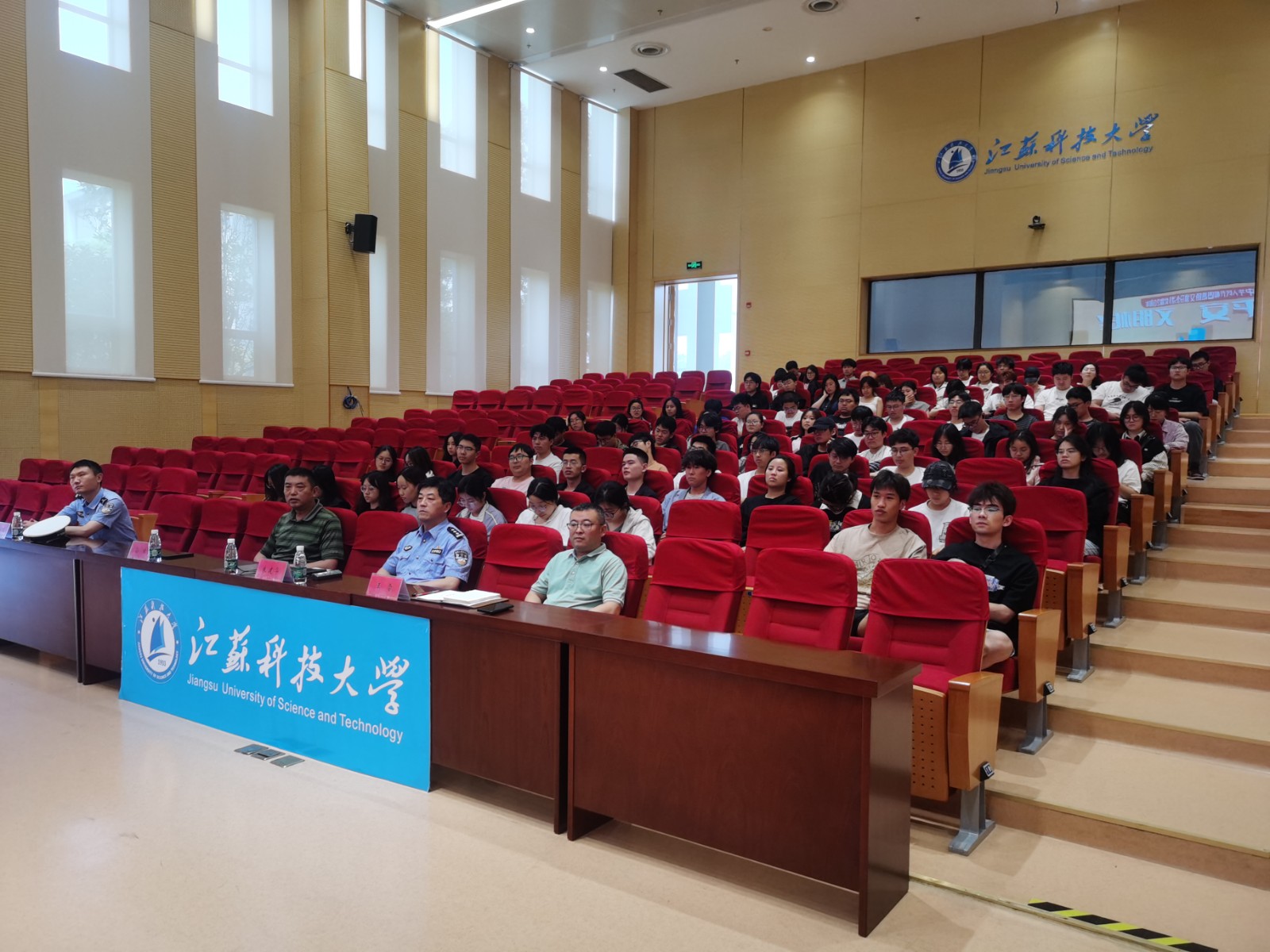 为进一步做好校园交通安全教育, 普及道路安全知识,增强学生安全意识和自我保护能力,宣传《中华人民共和国道路交通安全法》,持续推进“畅行科大”行动,近日,qmh官网在行政楼100号会议室举行“法润平安 文明相伴”主题宣传活动。安保处副处长孙林、丹徒公安分局交通警察大队教导员朱建华、秩序中队指导员李宗虹、综合指导员张进及学生代表近百人参加,活动由安保处副处长王雷主持。