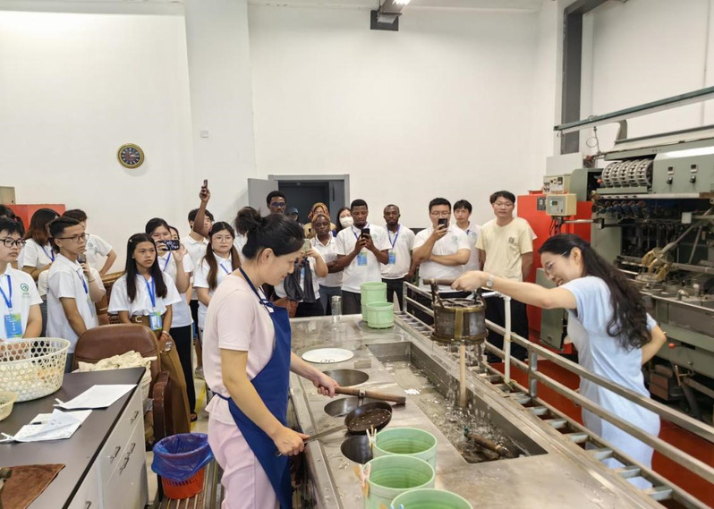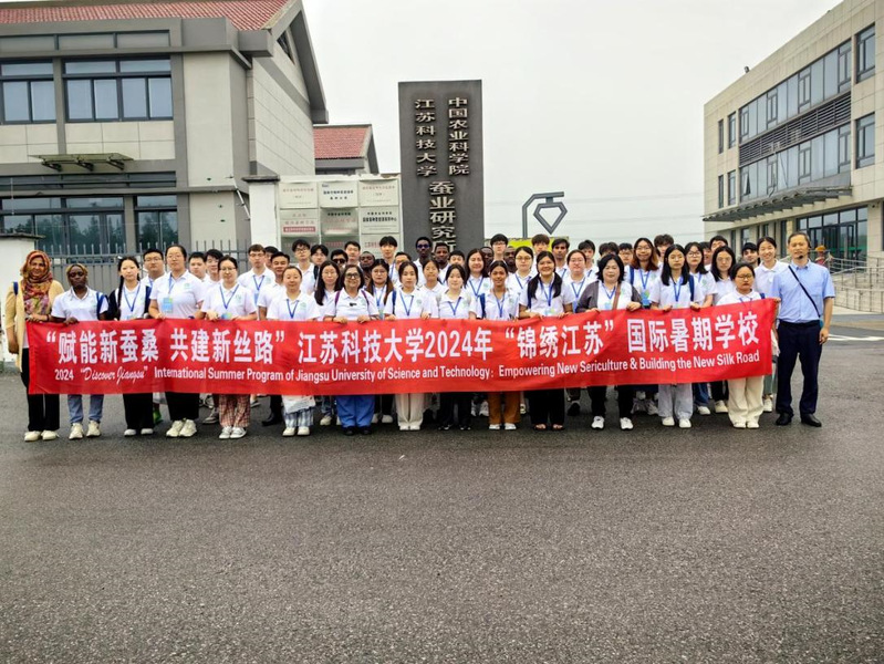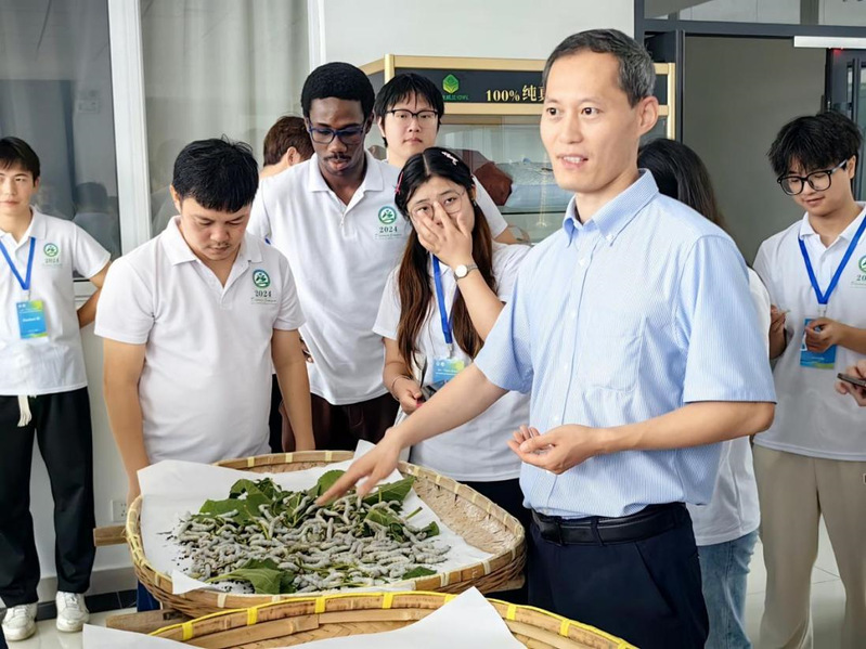为进一步提升国际暑期学校学员对蚕桑产品深加工先进科学技术和广泛应用的认识,7月13日,学员们赴茧丝绸加工行业龙头企业——江苏海安鑫缘茧丝绸集团股份有限公司参观学习,深入了解茧丝绸生产工艺流程、企业文化以及蚕桑相关产品研发与应用。