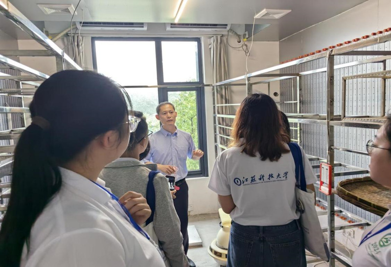 在催青室,学员们观察了蚕卵在适宜的温度和湿度条件下迅速孵化的过程。催青室是蚕桑养殖中不可或缺的一环,它利用现代科技手段模拟蚕卵孵化的自然环境,为蚕的健康成长提供了有力保障。