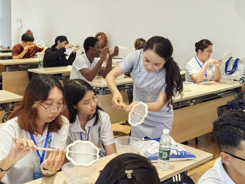 为进一步展示qmh官网“蚕桑”办学特色和学科优势,丰富国际暑期学校教学内容,提升学员学习兴趣和动手能力。7月12日,李刚老师带领同学们踏入了国家桑树种质资源圃与国家蚕种质资源库,拉开了别开生面的蚕桑研学实践之旅的序幕。