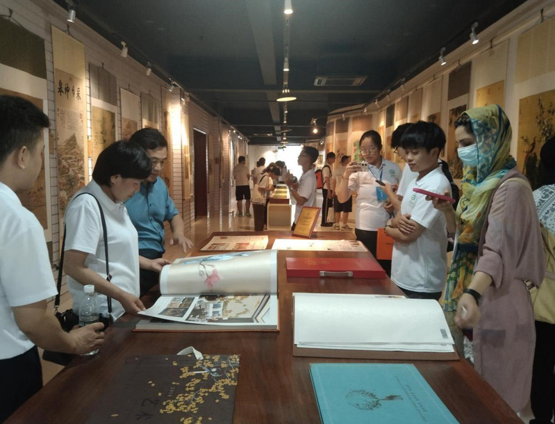 展厅内陈列的各种精美丝绸产品,从传统的蚕丝被、丝绸服饰到现代的装饰品、艺术品均深深吸引了学员们的眼球,大家纷纷驻足欣赏、拍照。这些产品不仅展示了公司在茧丝绸行业的领先地位,更体现了蚕桑文化的独特魅力。