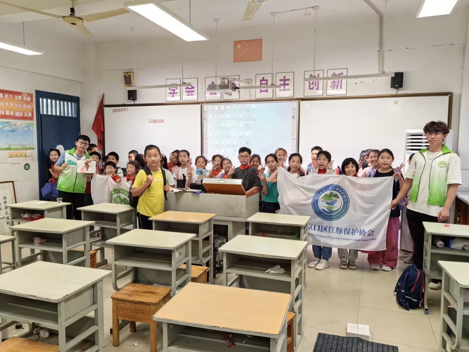 9月27日,长江江豚保护宣讲团联合镇江市金山实验学校开展了以“守护江豚,从我做起”为主题的科普宣讲活动。活动伊始,志愿者向小朋友详细介绍了江豚的小档案、生存现状、保护案例及杰出贡献者,并通过视频与图片加深了小朋友们对江豚有了更全面的了解。活动最后,志愿者带领小朋友们一起齐声朗诵了《江豚歌》,用童声表达了对江豚的热爱和保护决心。