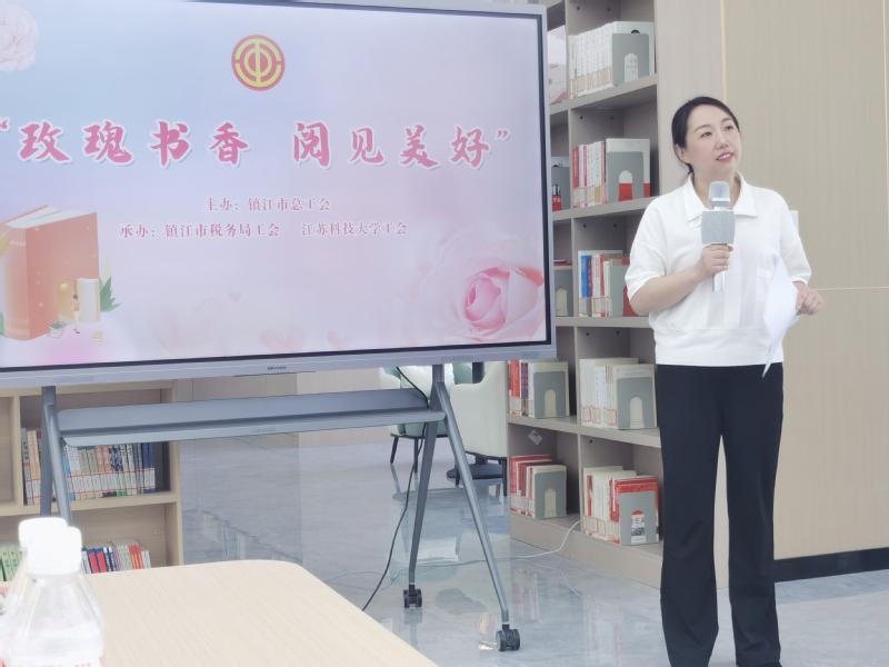 9月28日,在这个金秋送爽、书香四溢的美好日子里,镇江市工人文化宫焕然一新重新启用,当天在文化宫内的“匠心书院”(职工书屋)举办了以“玫瑰书香阅见美好”为主题的读书分享活动。此次活动由镇江市总工会女工部主办,球盟会qmh网站工会、镇江市税务局工会承办,吸引了qmh官网众多女教工的热情参与,共同沉浸在书香世界中,享受阅读的乐趣与魅力。活动由镇江市总工会女工部部长金茜主持。