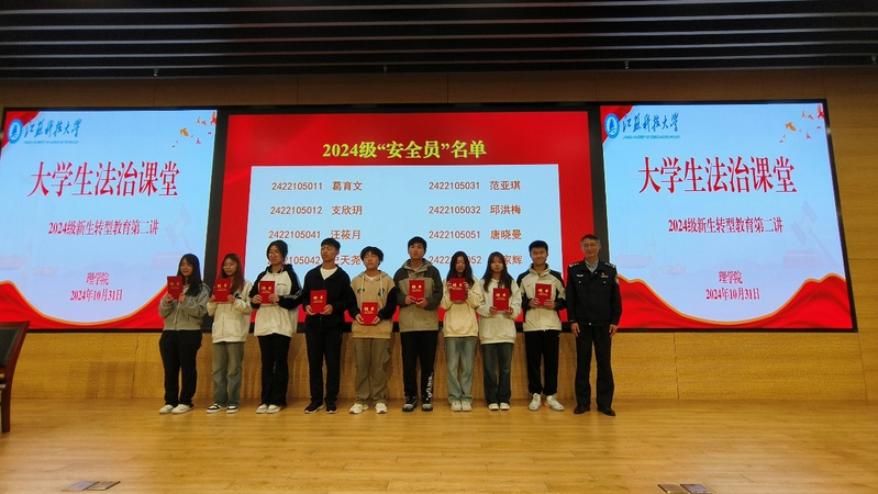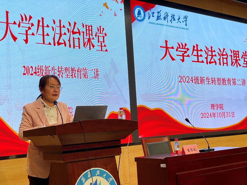 为有效增强大学生的安全意识,提高识别与防范电信诈骗的能力,做懂法、守法的新时代大学生,10月31日晚,理学院在图书馆B105报告厅举办了一场法治教育讲座。镇江市公安局丹徒分局长山派出所所长张学斌为全体学生带来一场以“大学生法治课堂”为主题的讲座。学院2023、2024级本科生及2024级研究生参与共同聆听了专题讲座。讲座由理学院党委副书记周志辉主持。
