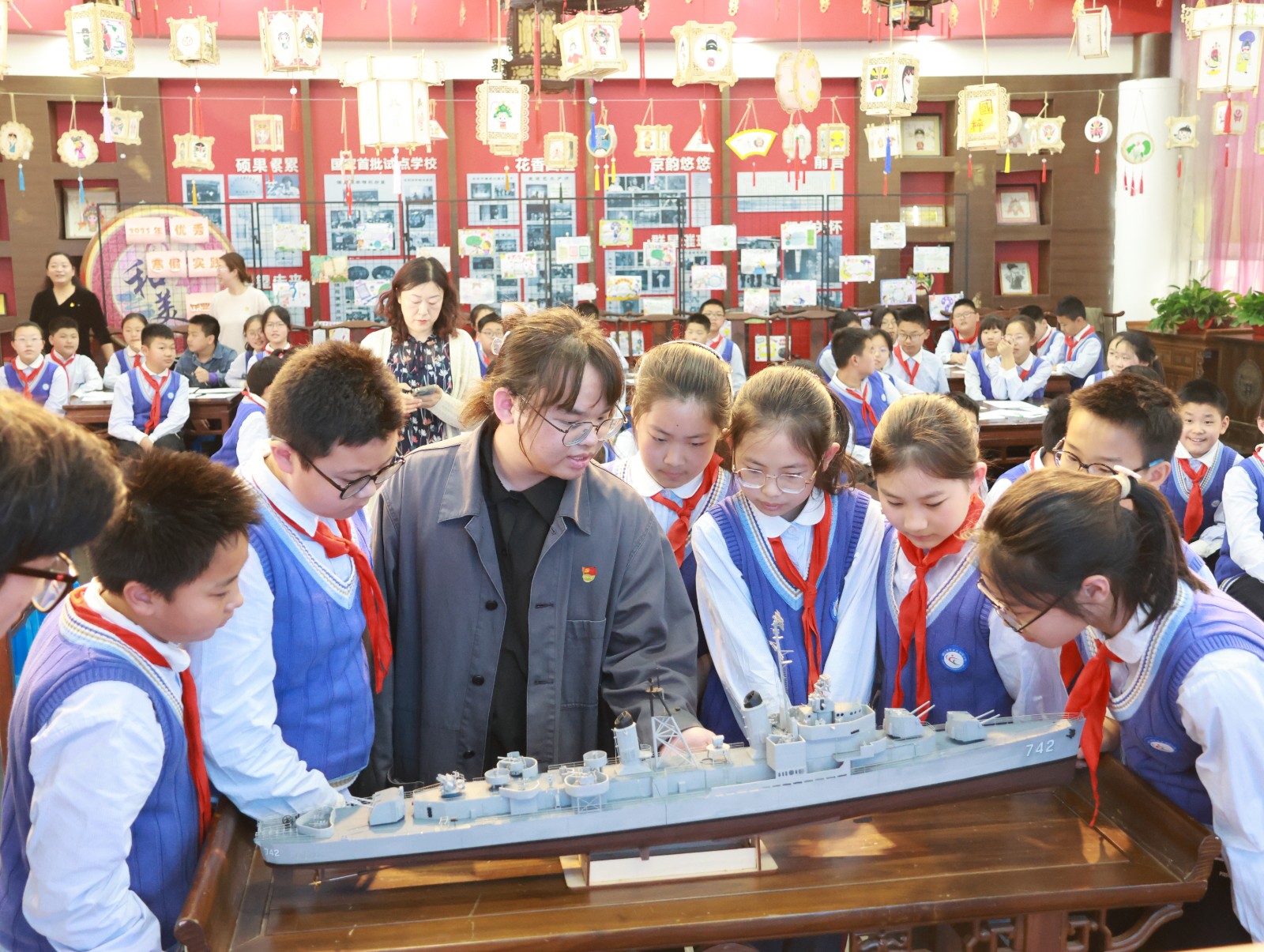 活动伊始,支部党员们为同学们普及了基本的海洋知识和船舶的基本构造,极大激发了同学们对海洋和船舶的好奇心。紧接着,党员教师们通过精彩的课件展示和生动的视频,为同学们上了一堂“船模馆里铸船魂”微党课。从古老的郑和宝船,到开天辟地的“红船”,再到如今的高科技海洋航行器,同学们听得专注入神,深深被红船精神所感染。
