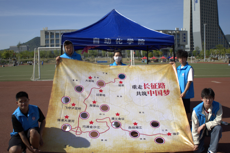 当日下午,西操场化身为“长征路”,15支参赛队伍通过协作操控长征路线图,引导网球重走“革命路”。“倾斜25度!注意乌江防线!”在自动化学院战队此起彼伏的指令声中,网球历时3分47秒顺利“抵达延安”。